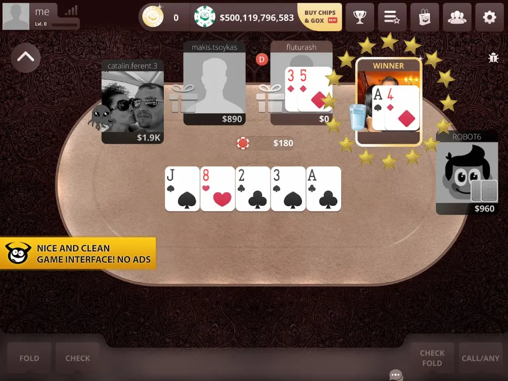 Pregătim o experiență premium de Texas Hold’em Poker unde vei merge all-in la mese cu mize mari, vei concura în turnee masive și îți vei croi drumul spre vârf prin blufuri inteligente.